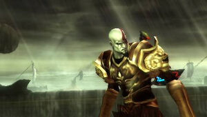 Kostum ini akan dipakai otomatis saat Kratos dalam God Armor tertimpa oleh tangan raksasa Colossus of Rhodes. Dalam wujud ini, Kratos menjadi sangat lemah.